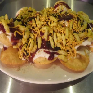 Vegetarian Gluten Free Vegan Halal Kosher Allergy Friendly Not ApplicableA refreshing cold dish consisting of layers of Paapdi crisps,chopped potates, garm peas and yoghurt. Sprinkled with special spices and dressed with tamarind sauce.