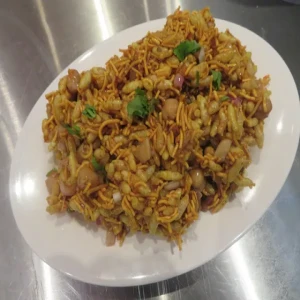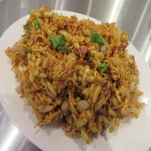Vegetarian Gluten Free Vegan Halal Kosher Allergy Friendly Not ApplicableSpicy puffed rice topped with a mixtures of chopped patatoes, gram peas, red onions and coriander, Flavoured with an assortment of masalas. Garnished with tamarind sauce and green chutney.